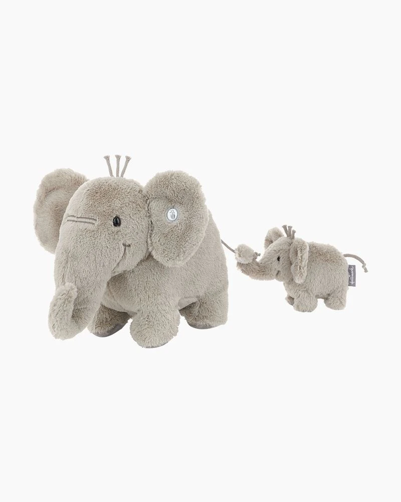 - Set of 2 animated big and little elephant stuffed animals are made of soft plush fabric with hook-and-loop tape fasteners