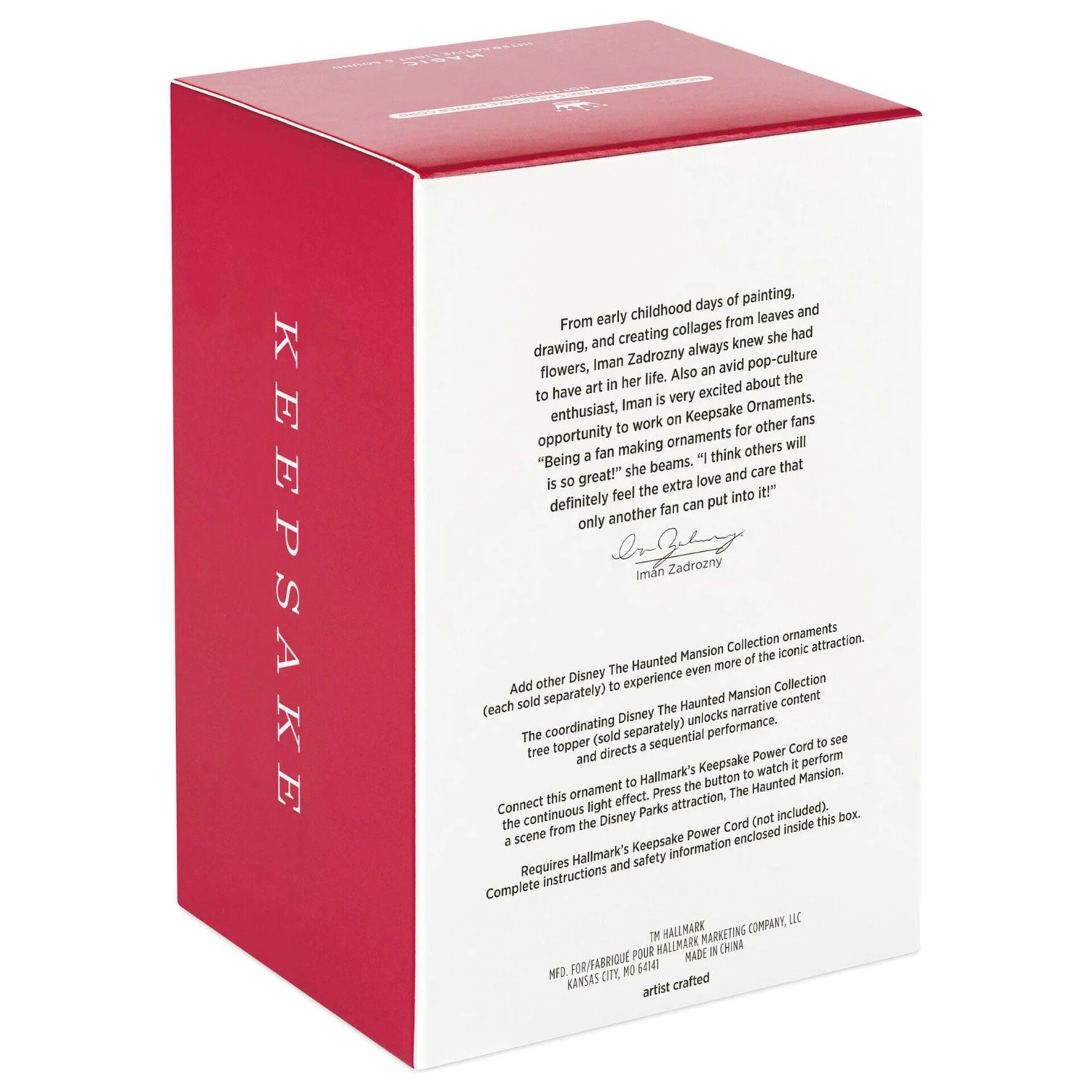 - Key Features: Connect the Storytellers Interactive Light and Sound ornament to Hallmark’s Keepsake Power Cord (sold separately) to see the continuous light effect. Press the button to watch it perform a scene from the Disney Parks attraction, The Haunted Mansion. Add other Disney The Haunted Mansion Collection ornaments to experience even more of the iconic attraction. The coordinating Disney The Haunted Mansion Collection tree topper unlocks narrative content and directs a sequential performance.